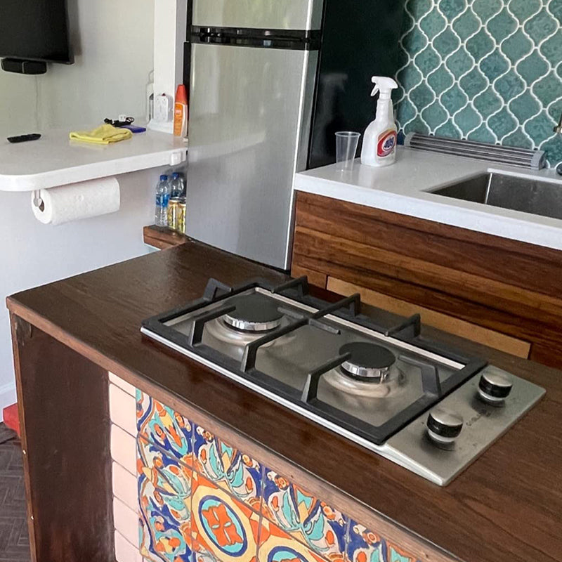 This GH60SF is a high-quality 4-burner built-in gas stovetop made of stainless steel. It features heavy cast iron pan support grates, melt-proof bakelite knobs, and black burner covers. With a compact size and powerful burners, it matches different kitchen styles and meets various cooking needs. Safety is ensured with a thermocouple flame-out failure device system, it is certified by ETL and includes a CSA-certified gas pressure regulator. The stovetop supports both natural gas and liquid propane with an included conversion kit, and the electric ignition operates on 120V AC power.