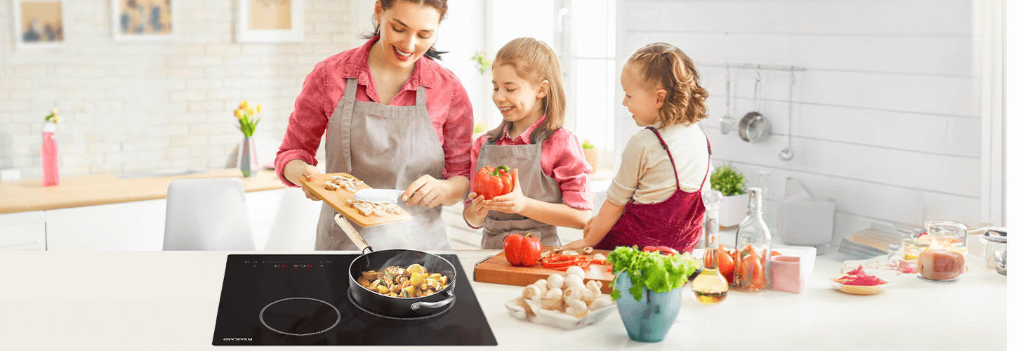 Efficient Heating - This ceramic electric cooktop can be used with any type of flat-bottomed cookware. By energizing a dense coil beneath the ceramic panel, heat is conducted vertically upwards, effectively heating the appliance.