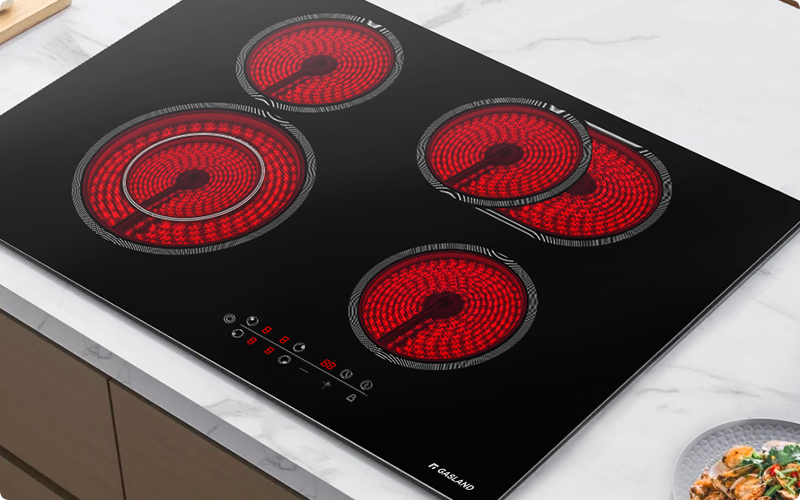 Powerful Heating - It features 4 cooking zones with 2 powerful dual-ring elements (1200W+1200W+2000W+2200W) at total output of 6600W and 9 heat levels, from simmer to boil for the accurate heating required for your cooking.
