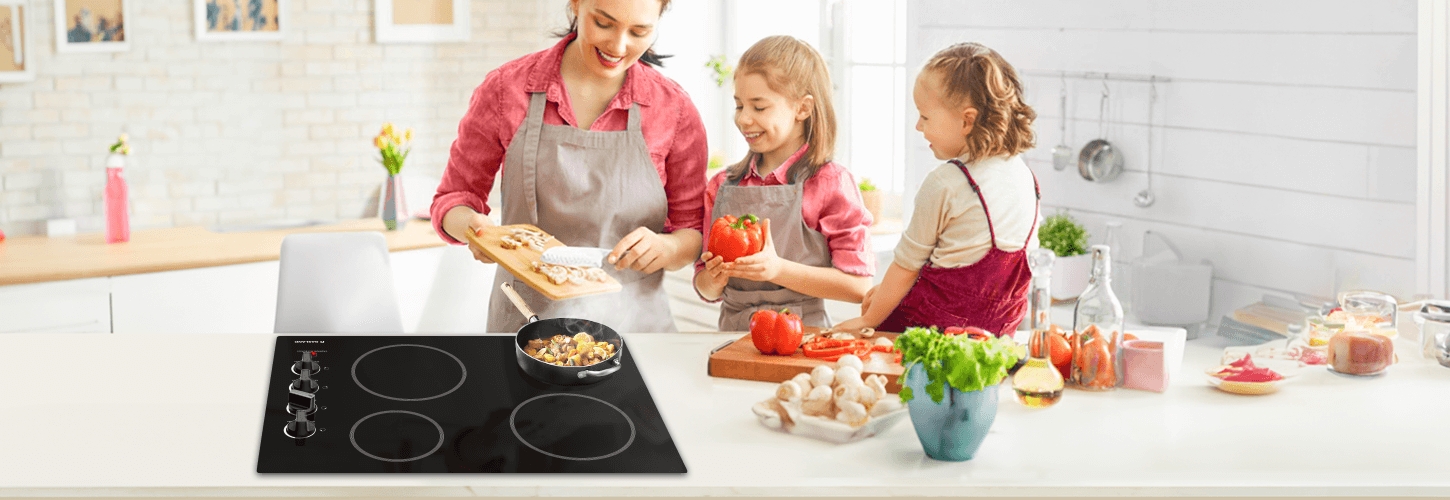 Efficient Heating - This ceramic electric cooktop can be used with any type of flat-bottomed cookware. By energizing a dense coil beneath the ceramic panel, heat is conducted vertically upwards, effectively heating the appliance.