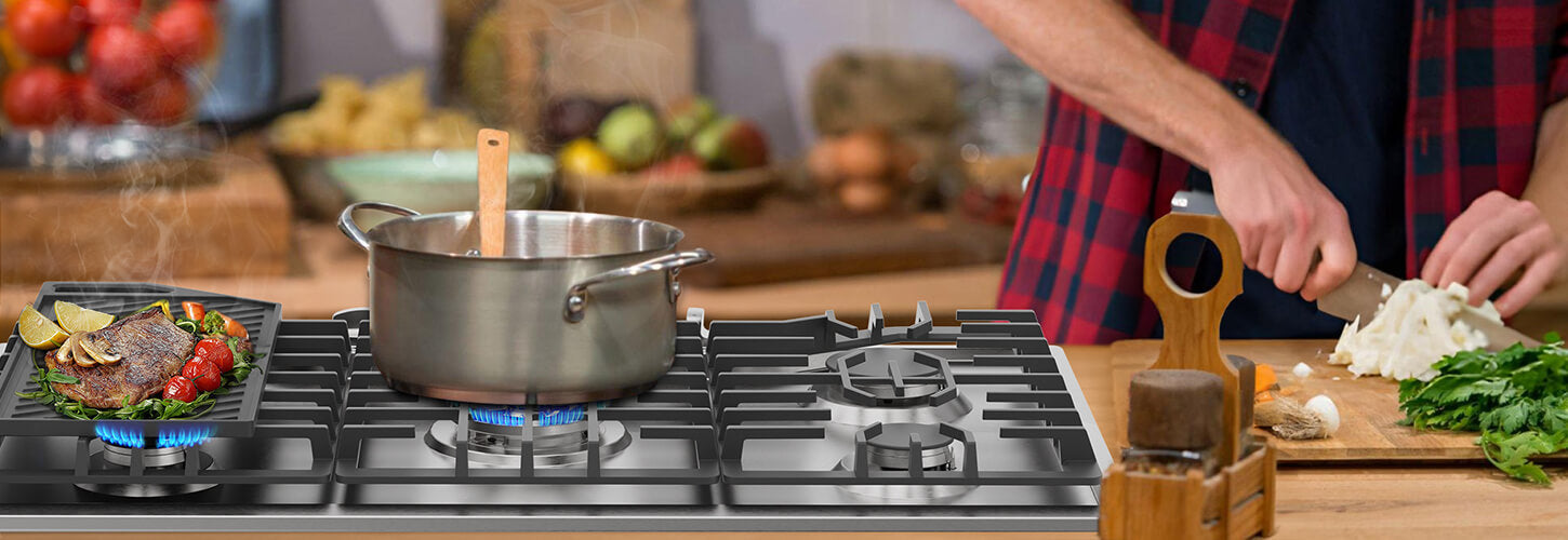 Efficient Performance - Our 36-inch gas cooktop offers include 1 auxiliary (4,000 BTU), 2 semi-rapid (7,000 BTU), 1 rapid (10,300 BTU), and 1 wok burner (13,000 BTU), High output of 41,300 BTU total, the fire burns quickly with a superpower and the flame with even heat distribution.