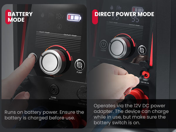 The battery will last the instant hot water heater for 100 minutes on a full charge and the camping water heater can be fully charged in 3 hours.